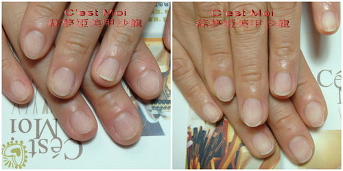 還記得前幾週來了位" 咬志堅強" 的朋友嗎?原本是因為想要美美的出國,所以來做水晶指甲遮住咬甲的部份沒想到這次出國渡假果然效用不錯~~~ 今天回來指甲都好好的 (呼~ 拭汗) 還記得之三週前的狀態嗎? 右下角的照片就是剛拍下來的.....指床(粉紅色的肉)是不是變漂亮了!!想再看一次文章的朋友請按這裡 水晶指甲的效用 很好~再接再厲~~ .....別咬!? 千萬忍住.....別咬水晶指甲呀!!!!